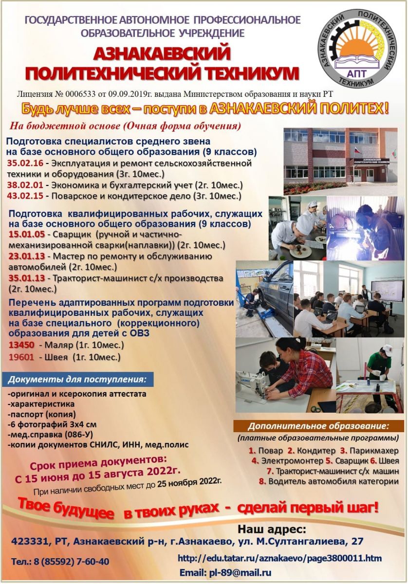 Государственное автономное профессиональное образовательное учреждение «Азнакаевский политехнический техникум» / дәүләт автоном һөнәри белем бирү учреждениесе "Азнакай политехника техникумы"