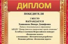 Поздравляем Ханнанову В.Д. с победой на Всероссийском конкурсе "Безопасное колесо" в номинации "Методическая разработка" (диплом 2 степени) 15.05.2020