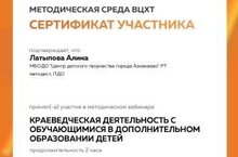 14.02.2024 г. Галиева С.С. и Латыпова А.С. приняли участие во всероссийском методическом семинаре "Методическая среда: Краеведческая деятельность с обучающимися в дополнительном образовании детей", организованном ФГБУК "ВЦХТ". 26.02.2024