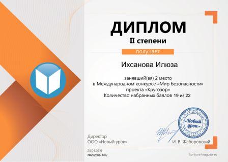 2 место в международном конкурсе «Мир безопасности проекта «Кругозор» (Ихсанова И., Латыпова А.С.)