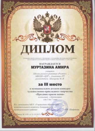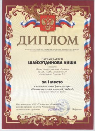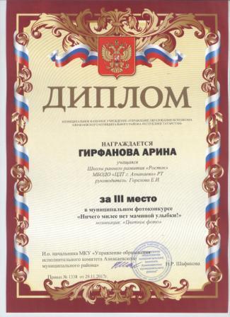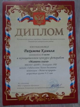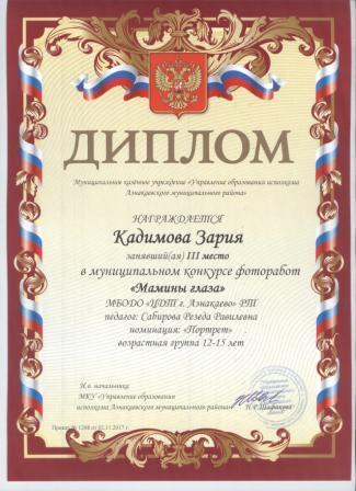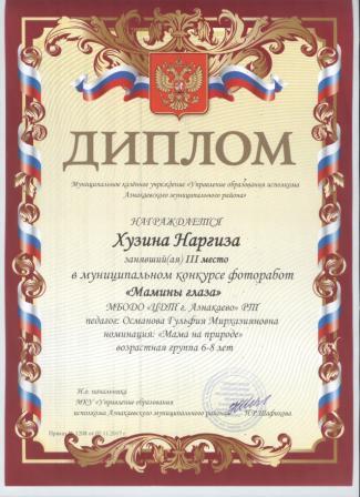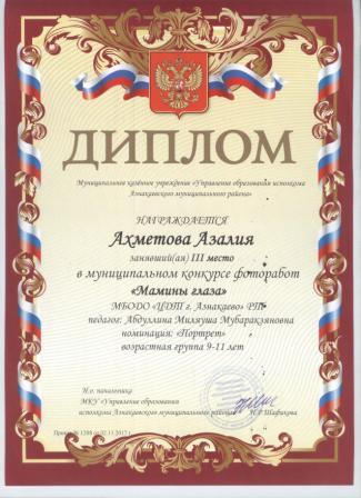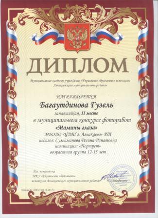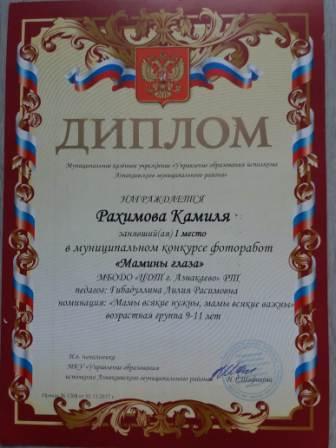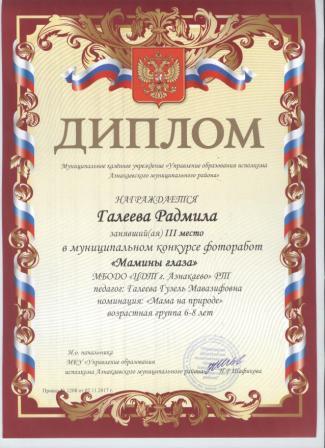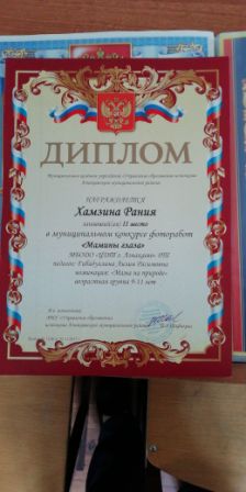 3 место в муниципальном конкурсе фоторабот «Мамины глаза» (Ахметова А., Абдуллина М.М.)