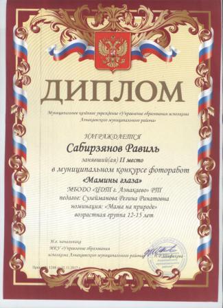 2 место в муниципальном конкурсе фоторабот «Мамины глаза» (Сабирзянов Р., Сулейманова Р.Р.)