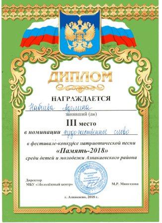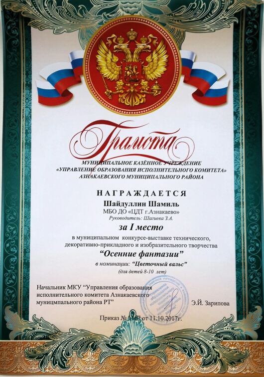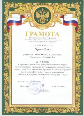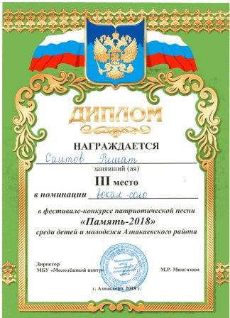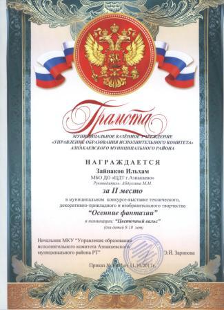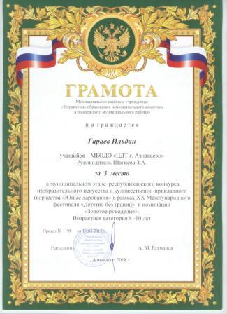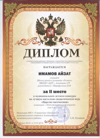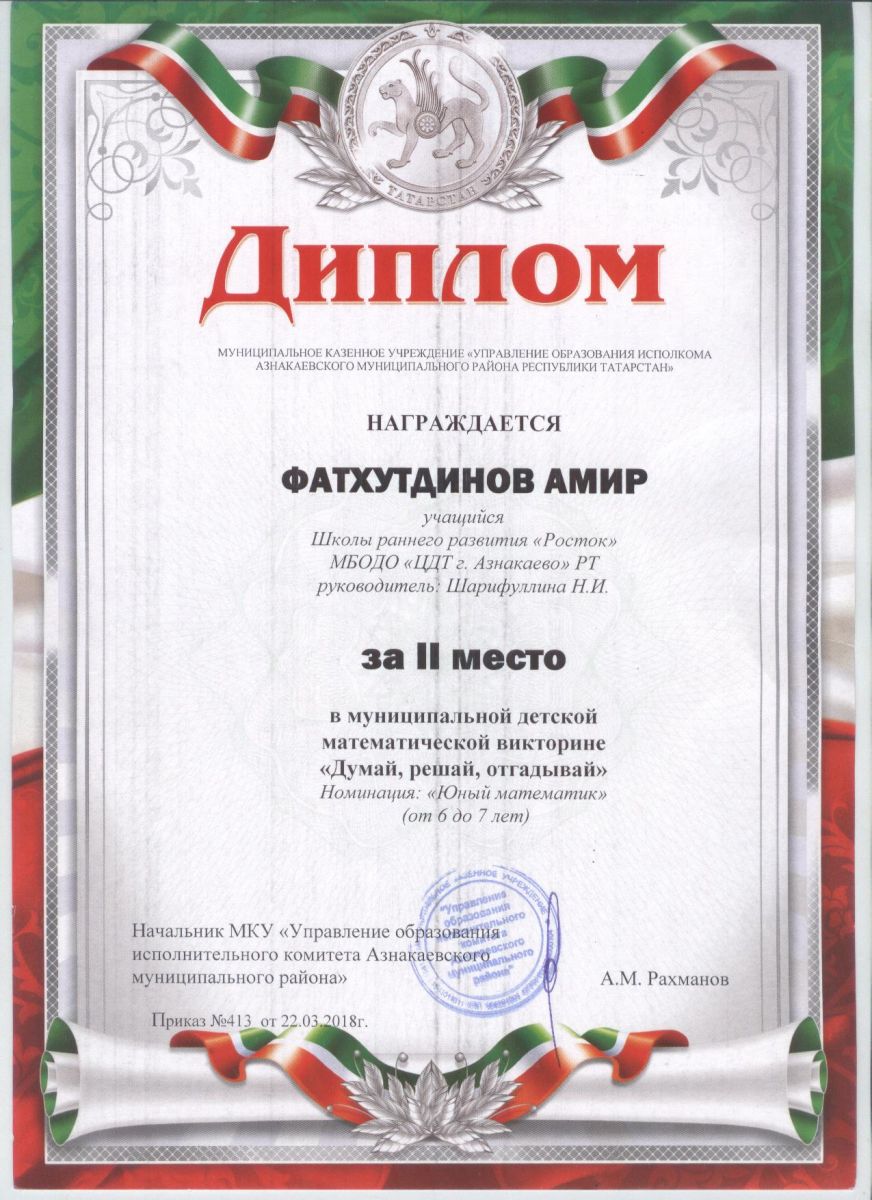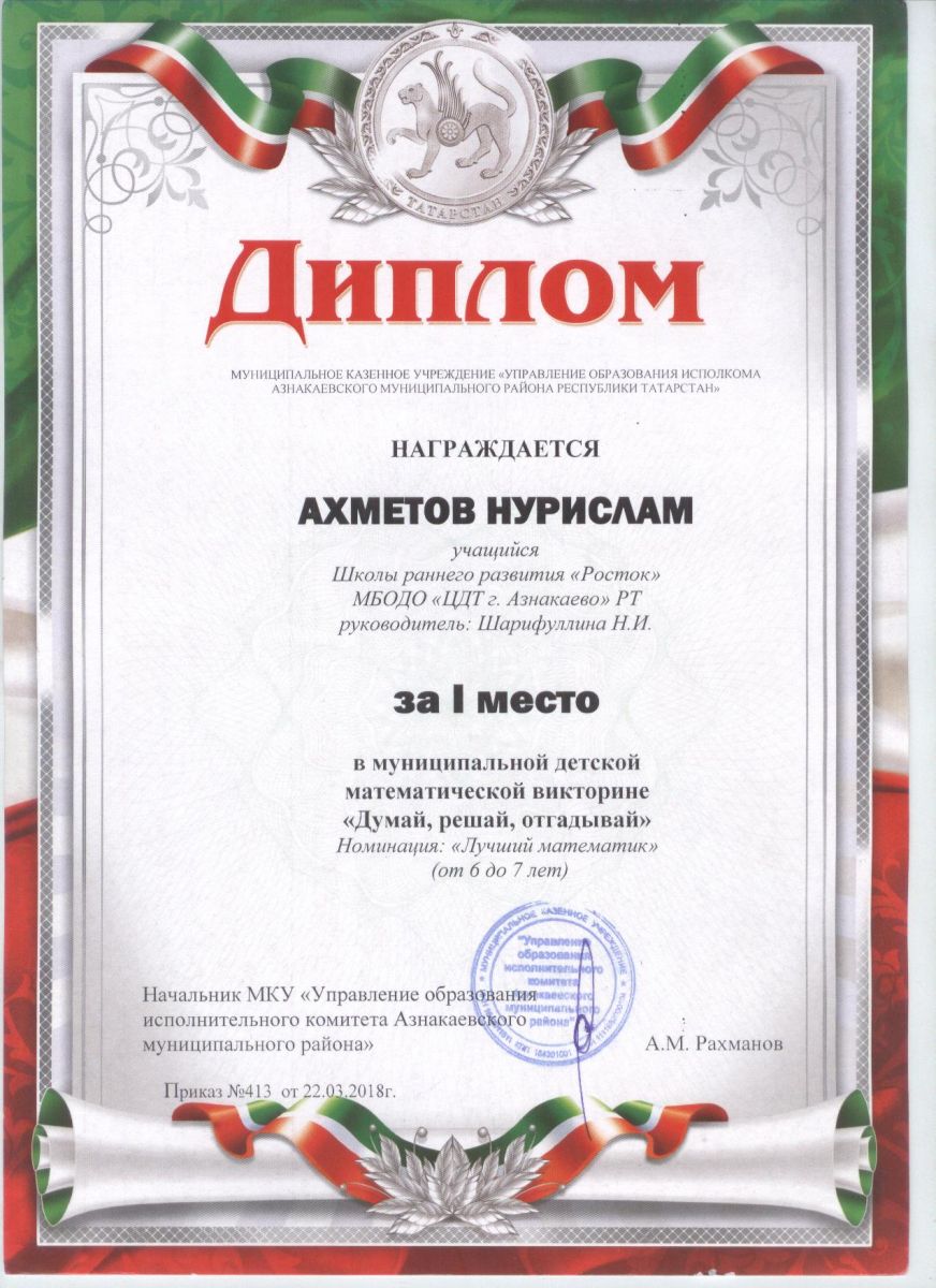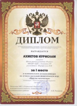 1 место в муниципальном конкурсе "Тукай исән, җыры күңелдә" (Миргалиев А.)