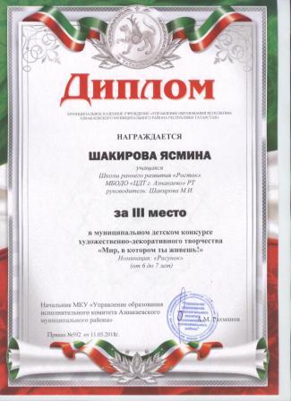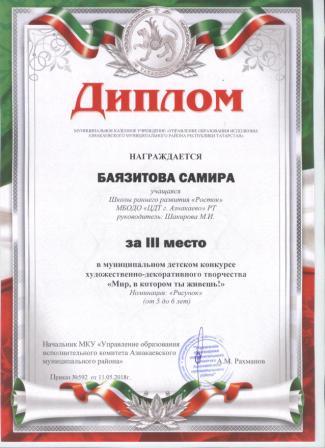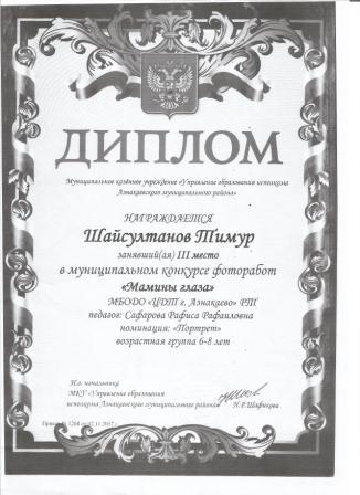 3 место в муниципальном конкурсе фоторабот «Мамины глаза» (Шайсултанов Т., Сафарова Р.Р.)