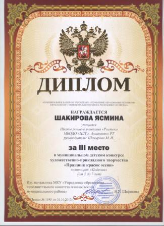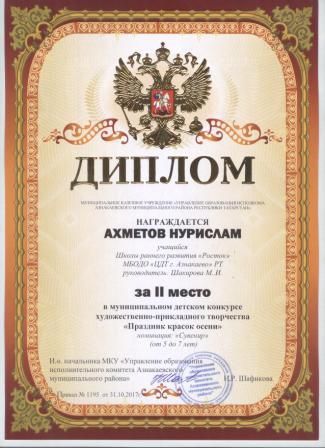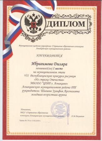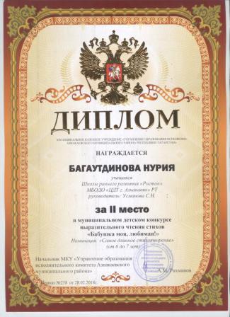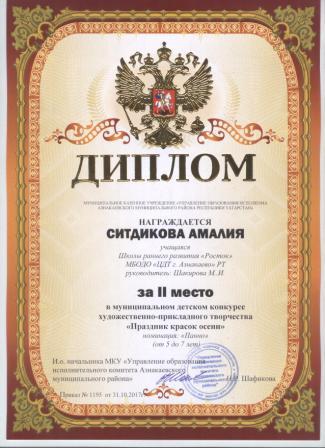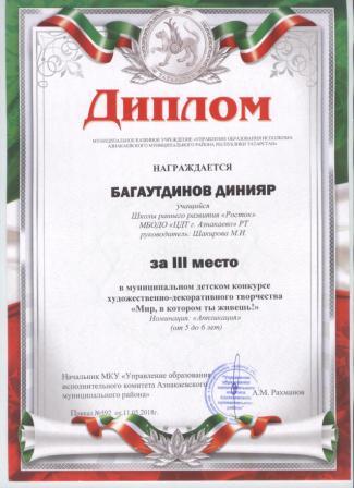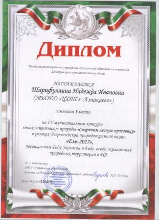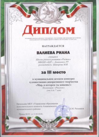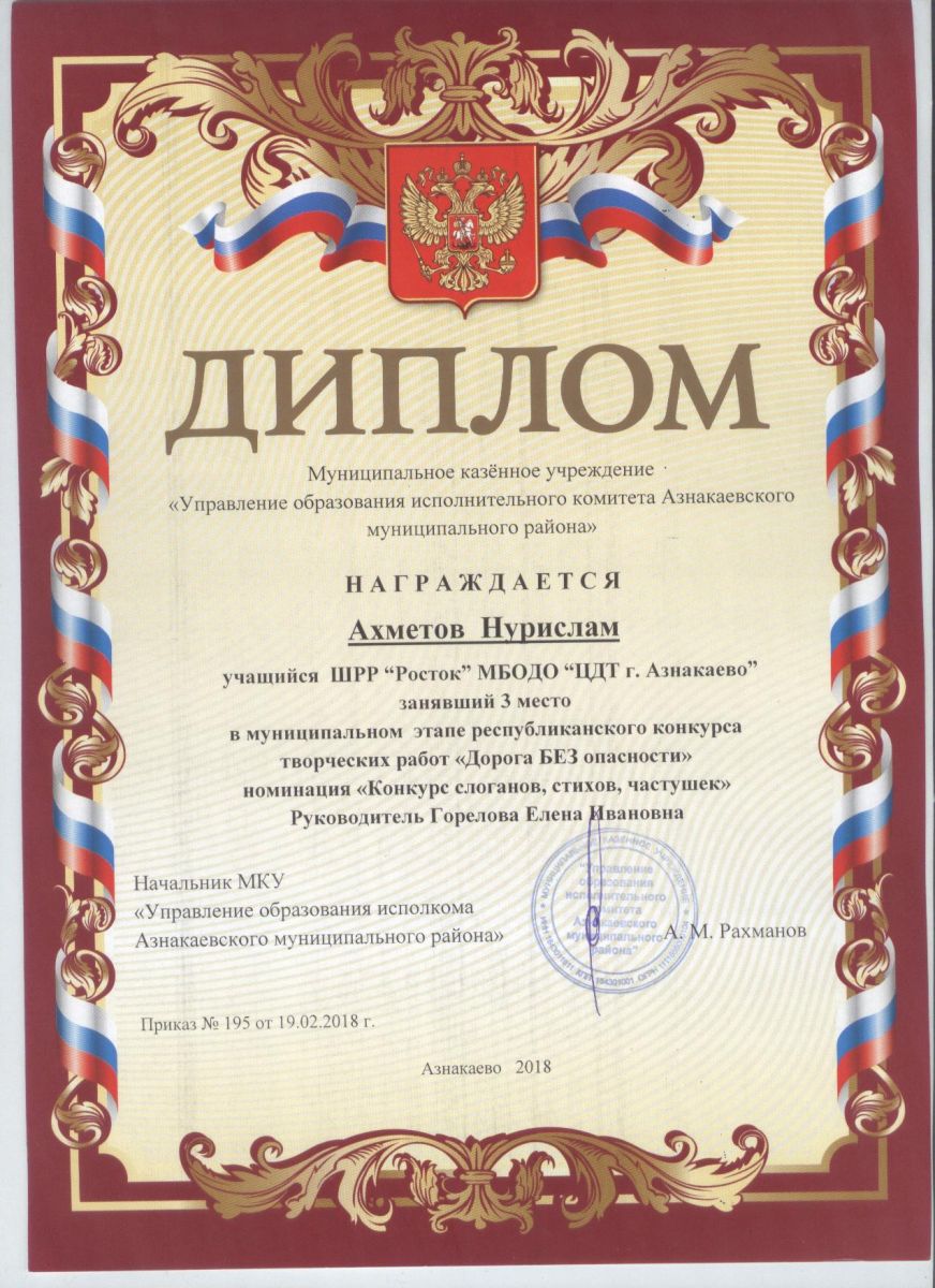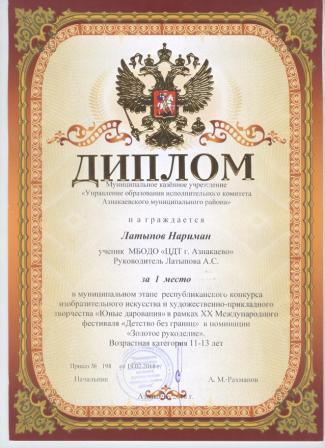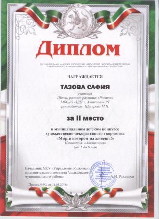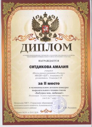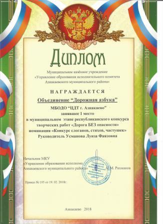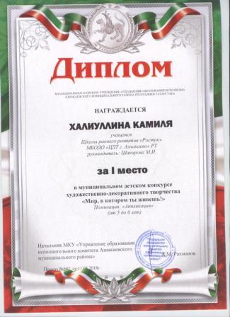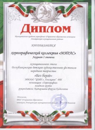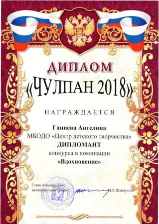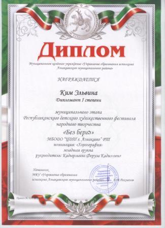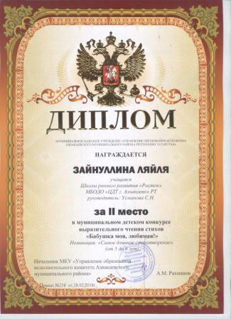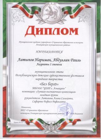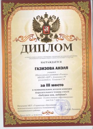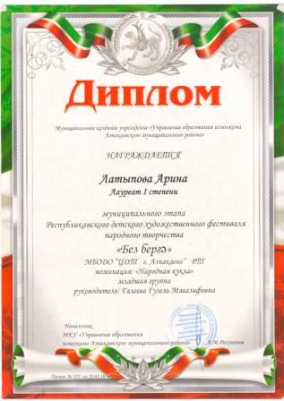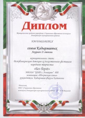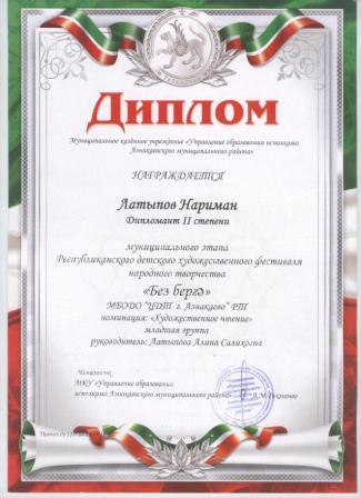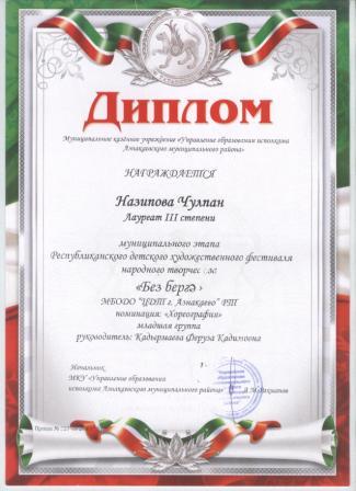Дипломант муниципального конкурса "Чулпан" (Ганиева А., Стрих Р.Р.)