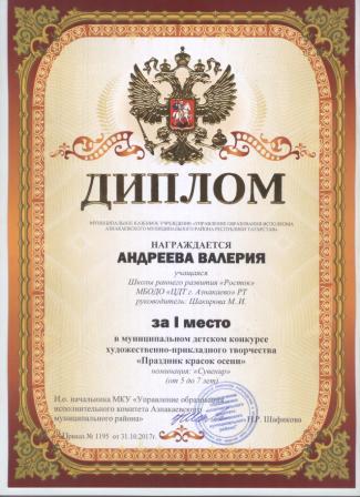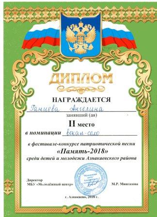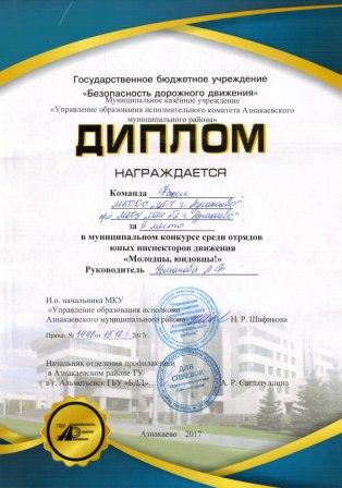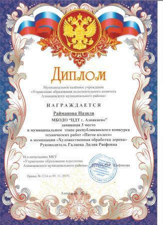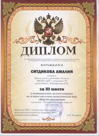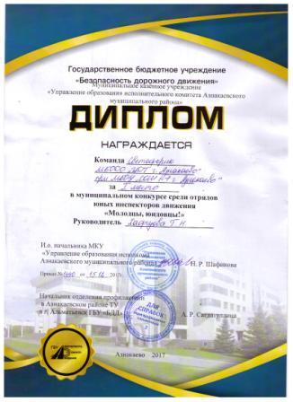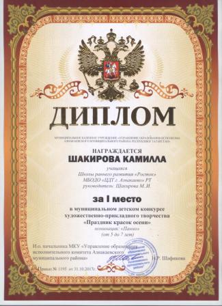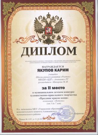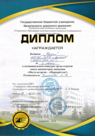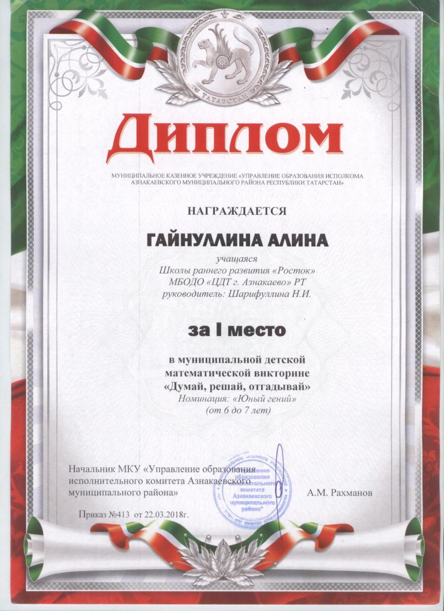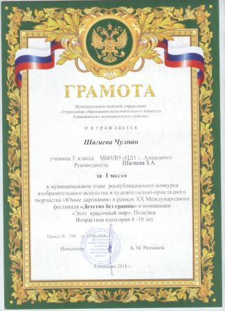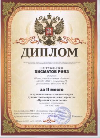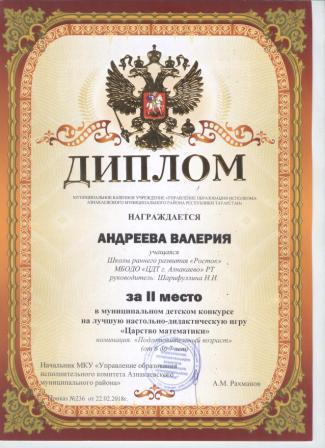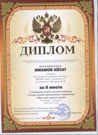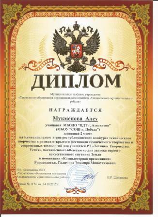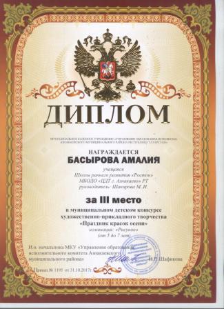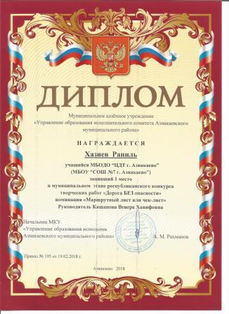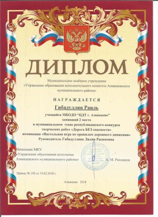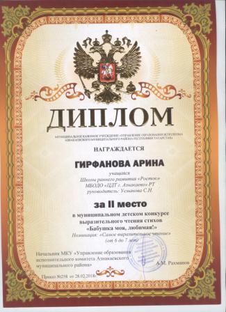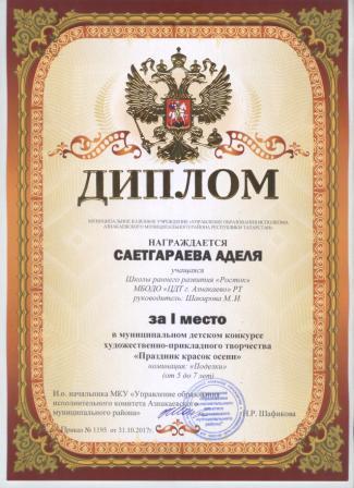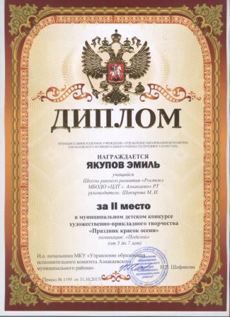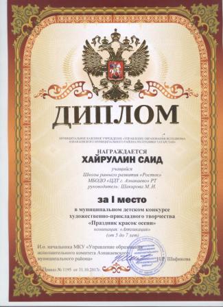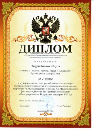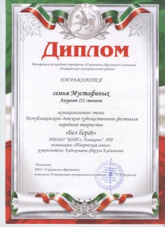 Дипломант муниципального конкурса "Чулпан" (Ганиева А., Стрих Р.Р.)