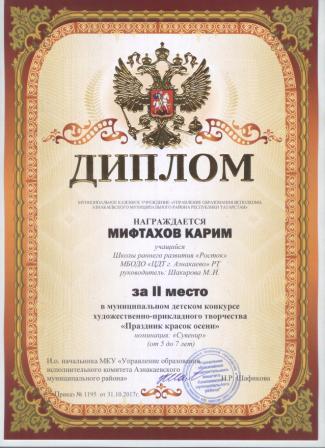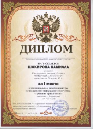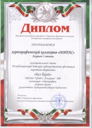Дипломант муниципального конкурса "Чулпан" (Галимова З., Шакирова М.И.)