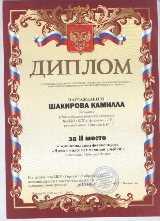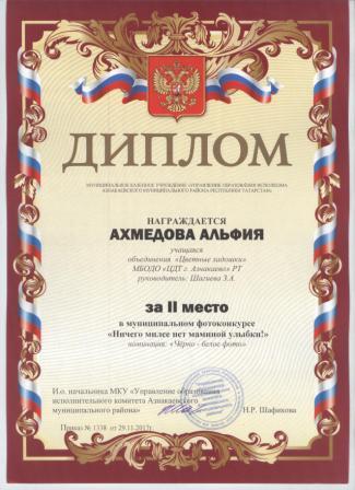 2 место в муниципальном конкурсе фоторабот «Мамины глаза» (Валеев И., Кадырмаева Ф.К.)