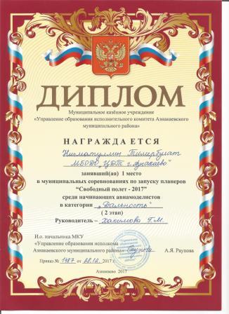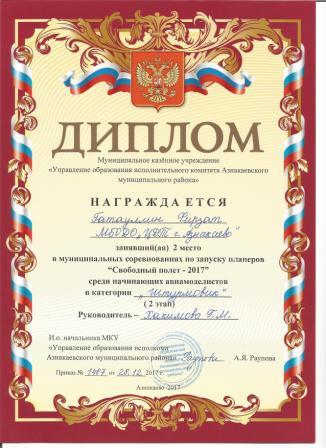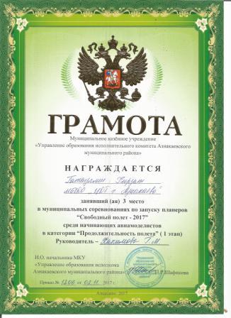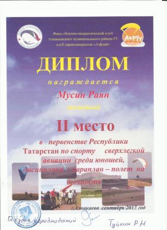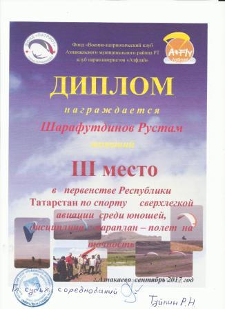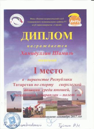 1 место в первенстве РТ по спорту сверхлегкой авиации (Хамидуллин Ш.)