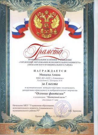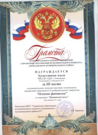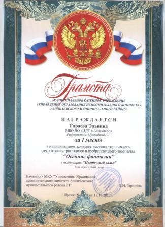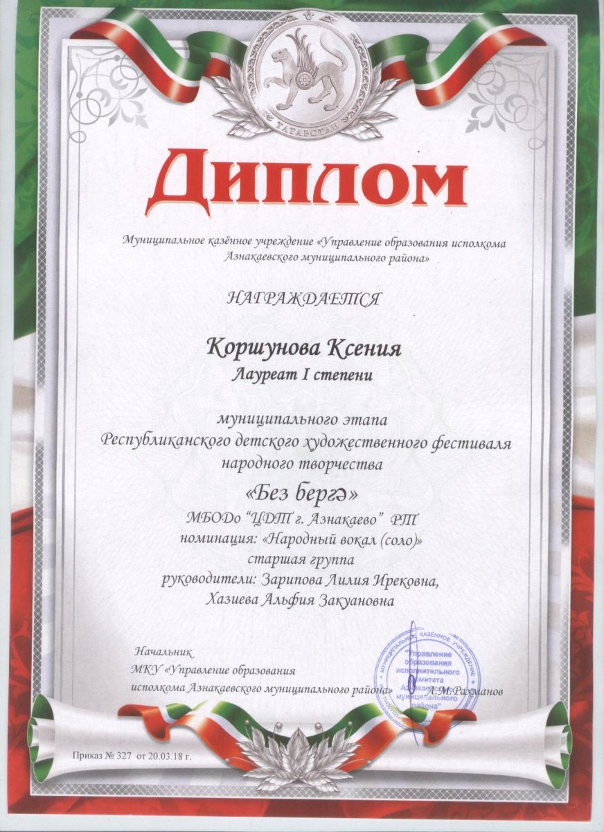 1 место в муниципальном конкурсе "Тукай исән, җыры күңелдә" Гатиятуллина Э.)