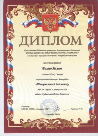 1 место в муниципальном конкурсе фоторабот "Танцевальный башмачок" (Валеев И., Кадырмаева Ф.К.)