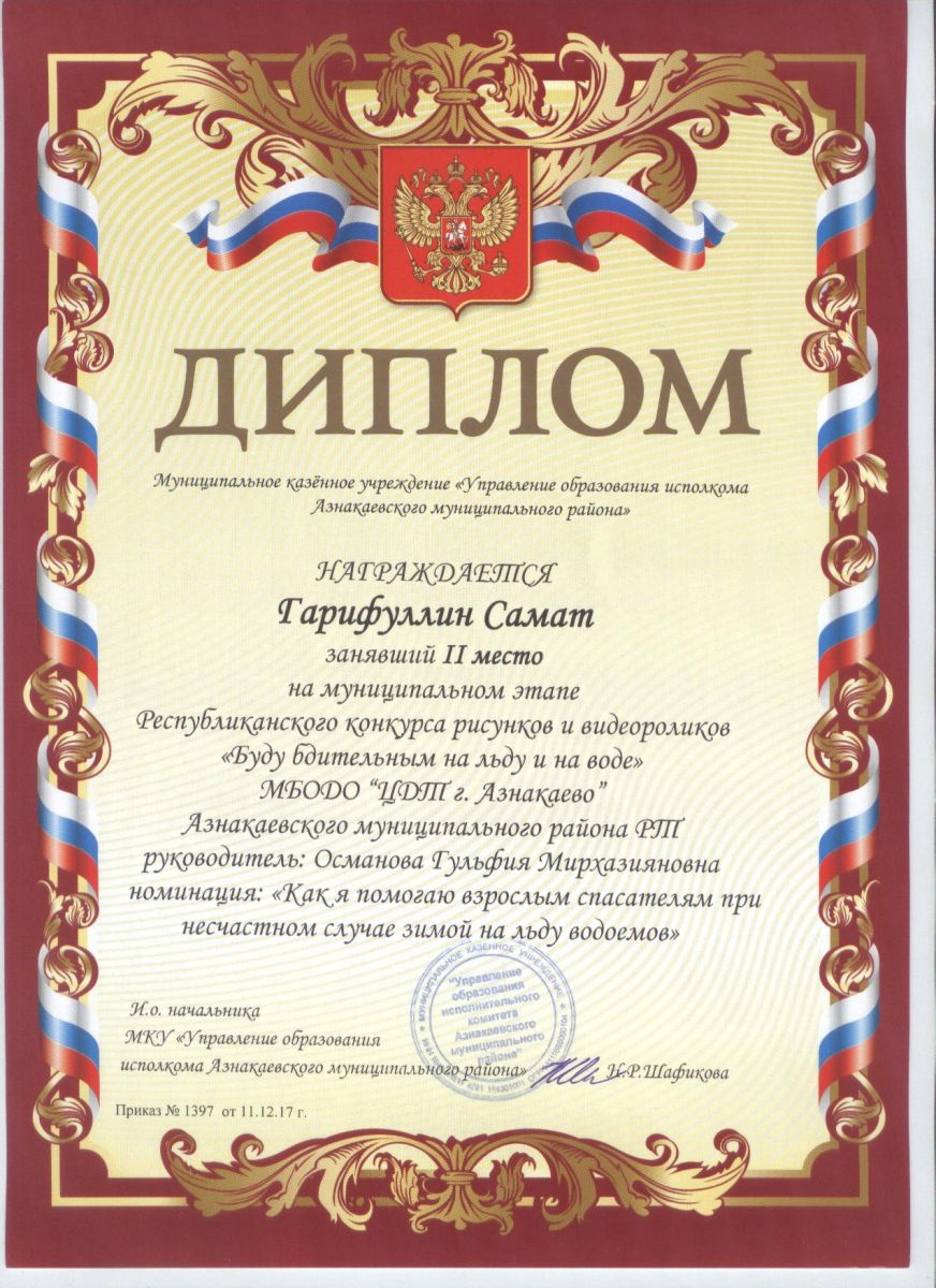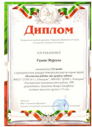 3 место в муницпальном конкурсе "Безопасная работа - это каждого работа" (Галеев М.)