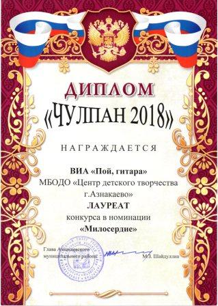 Лауреат муниципального конкурса "Чулпан" (ВИА "Пой, гитара", Стрих Р.Р.)