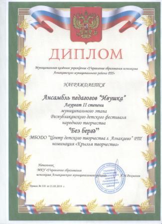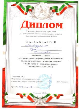 1 место на муницпальном этапе Всероссийского конкурса "Учитель здоровья - 2019" (Кадырмаева Ф.К.)
