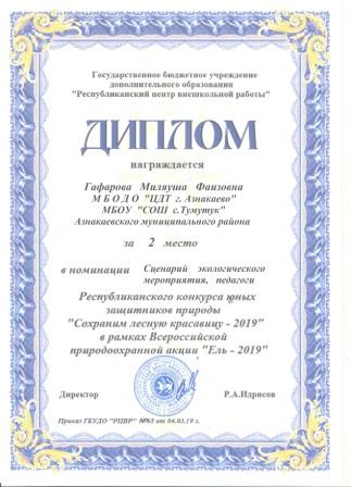 1 место на Республиканском конкурсе методических разработок (Габдрахманова Р.И.)