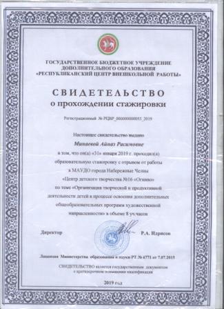 Свидетельство о прохождении стажировки (Минаева А.Р.)