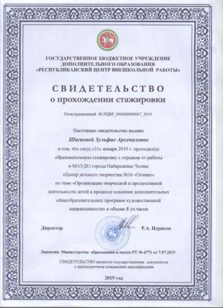 Свидетельство о прохождении стажировки (Шагиева З.А.)