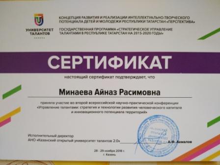 Сертификат участника всероссийской научно-практической стажировки (Минаева А.Р.)