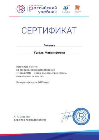 Сертификат участника во Всероссийском исследовании (Галеева Г.М.)