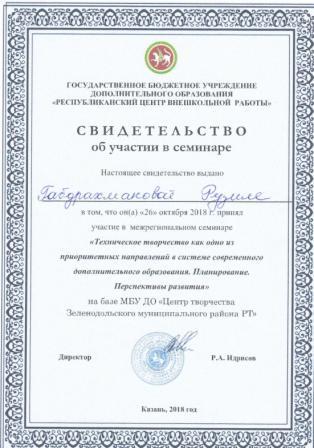Свидетельство об участии в семинаре (Габдрахманова Р.И.)