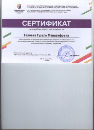 Сертификат участника всероссийской научно-практической конференции (Галеева Г.М.)