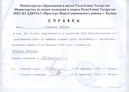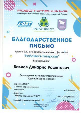 Благодарственоон письмо за подготовку команды к соревнованиям (Валиев Динарис)