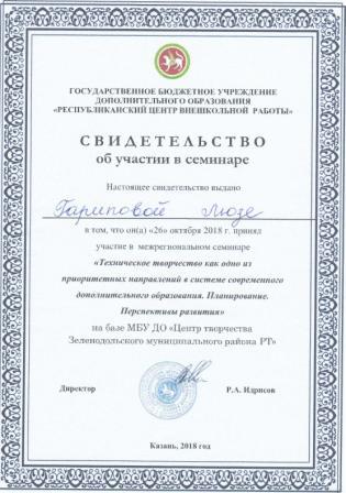 Свидетельство об участии в семинаре (Гарипова Л.Р.)