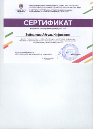Сертификат участника всероссийской научно-практической конференции (Зейналова А.Н.)