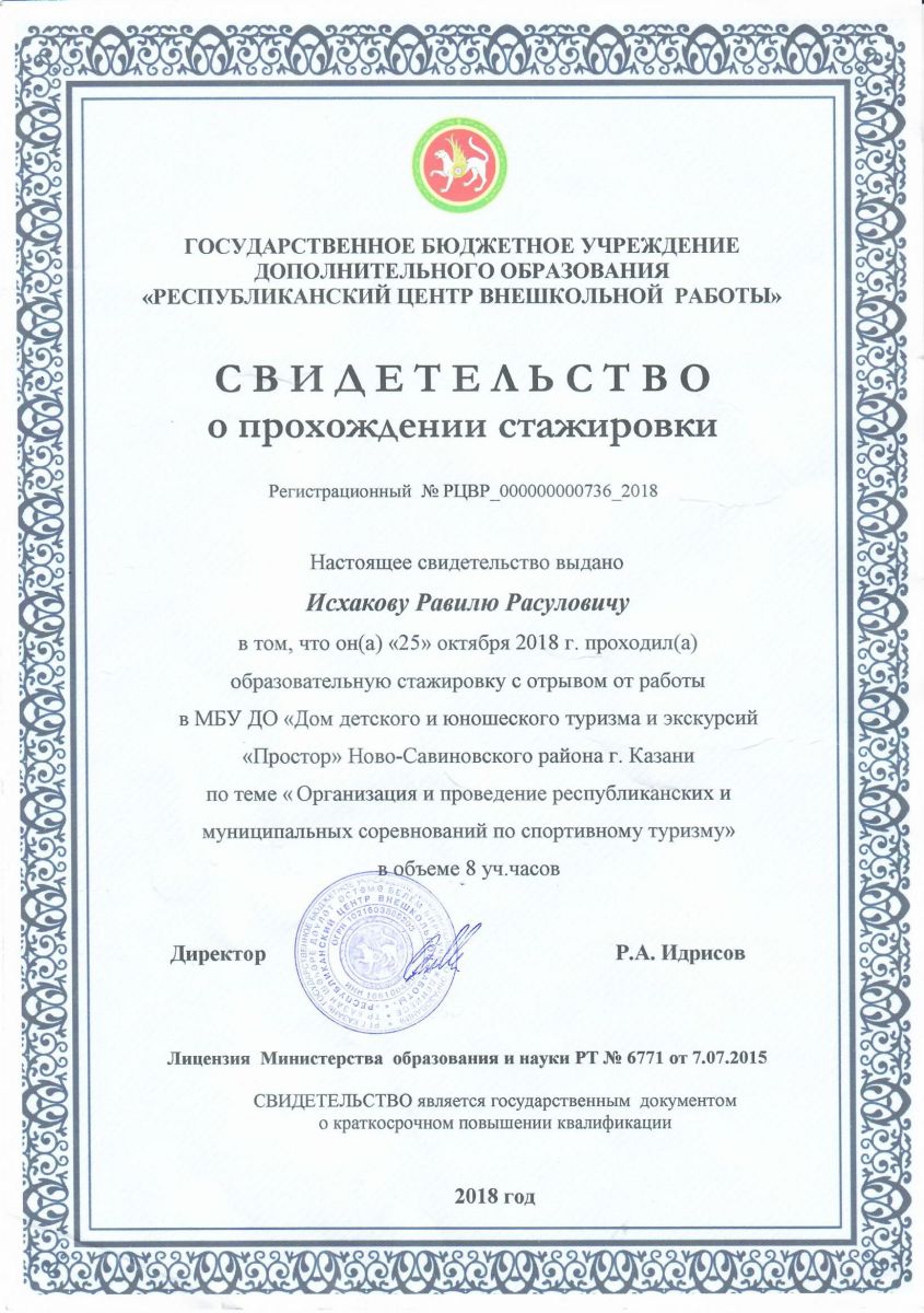 Свидетельство о прохождении стажировки в г. Альметьевск (Хазеев Р.З.)