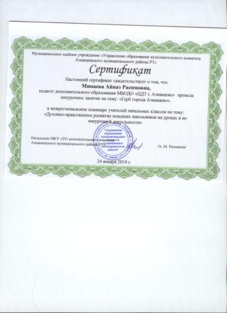 Сертификат о проведении внеурочного занятия (Минаева А.Р.)