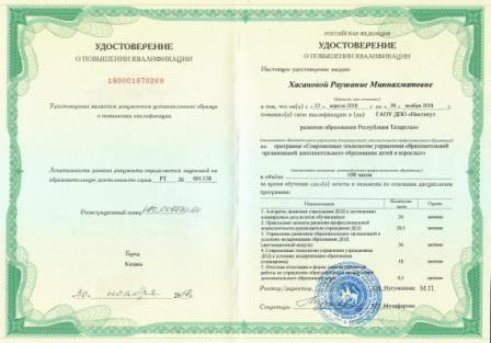 Удостоверение о повышении квалификации (Хасанова Р.М.)