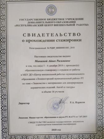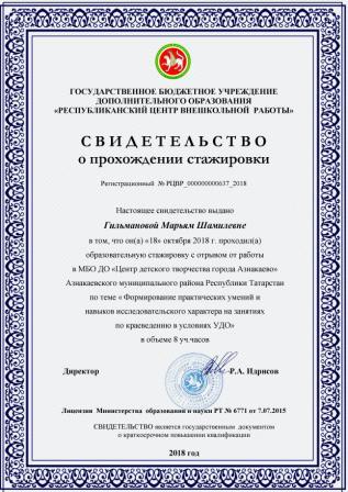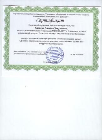 Свидетельство о прохождении стажировки в г. Альметьевск (Хакимова Г.М.)