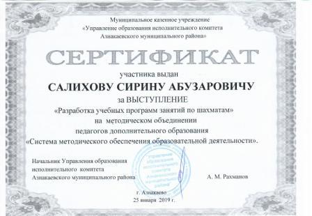 Сертификат о трансляции опыта через выступление с докладом (Салихов С.А.)