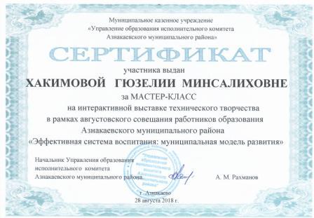 Сертификат участника мастер-класса (Хакимова Г.М.)