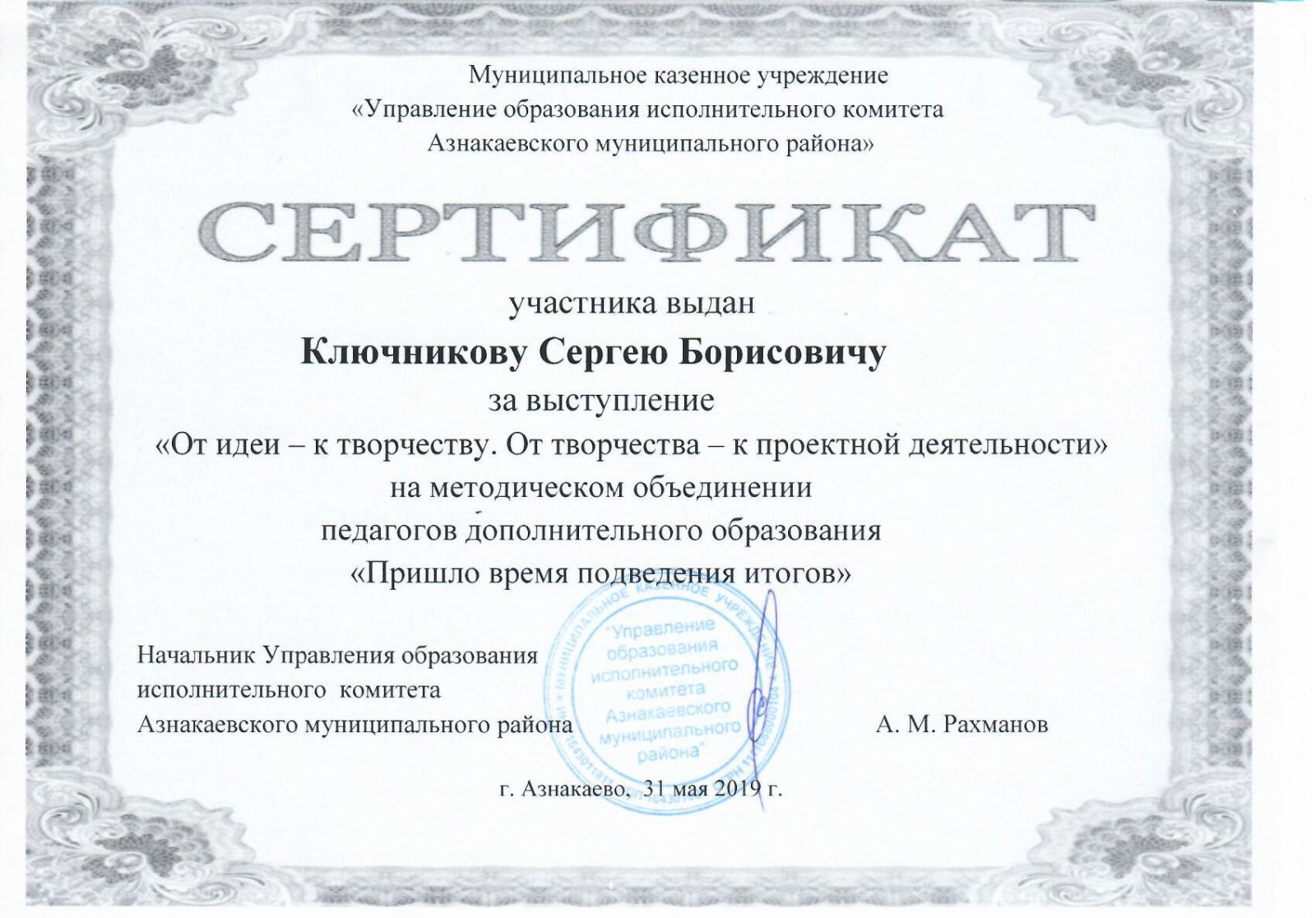 Сертификат участника мастер-класса (Ключников С.Б.)