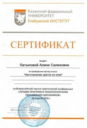 Сертификат о показе мастер-класса (Латыпова А.С.)
