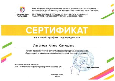 Сертификат участника в Республиканском родительском собрания (Латыпова А.С.)