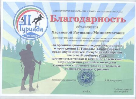 Благодарственное письмо за активное участие в подготовке и проведении мероприятий (Зайниева Р.З.)