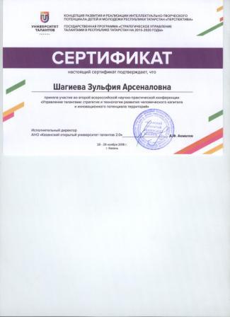 Сертификат участника Всероссийской научно-практической конференции (Шагиева З.А.)