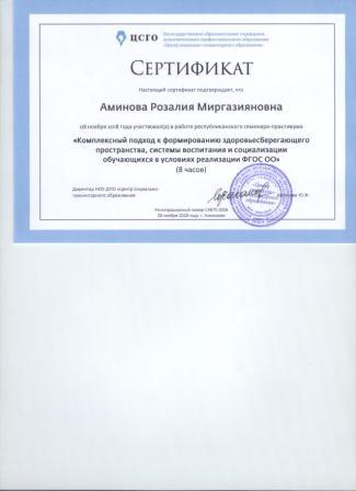 Сертификат об участии в работе республиканского семинара-практикума (Аминова Р.М.)