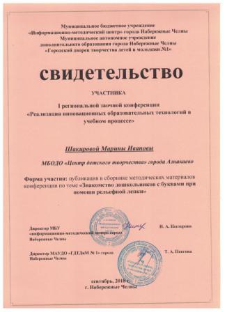 Свидетельство участника региональной заочной конференции (Шакирова М.И.)