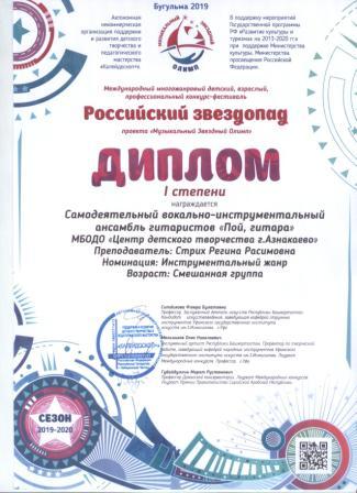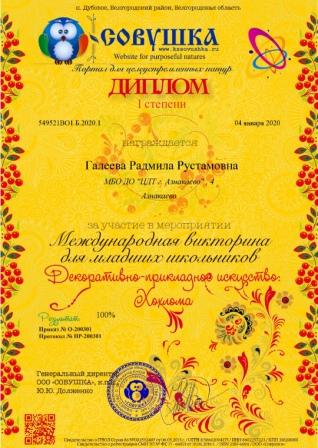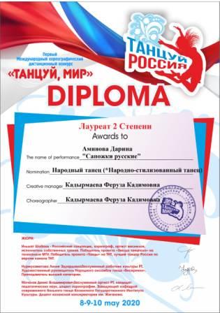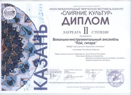 2 место в Международном фествале-конкурсе детского творчества (Зайдуллина И., Кадырмаева Ф.К.)