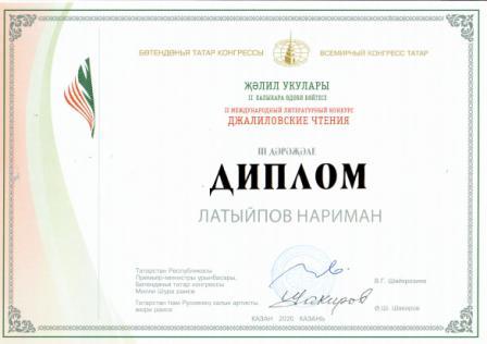 3 место в Международном литературном конкурсе "Джалилевские чтения" (Латыпов Н., Латыпова А.С.)