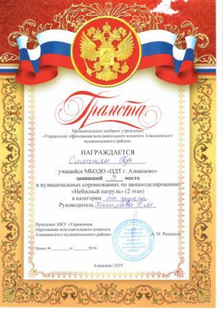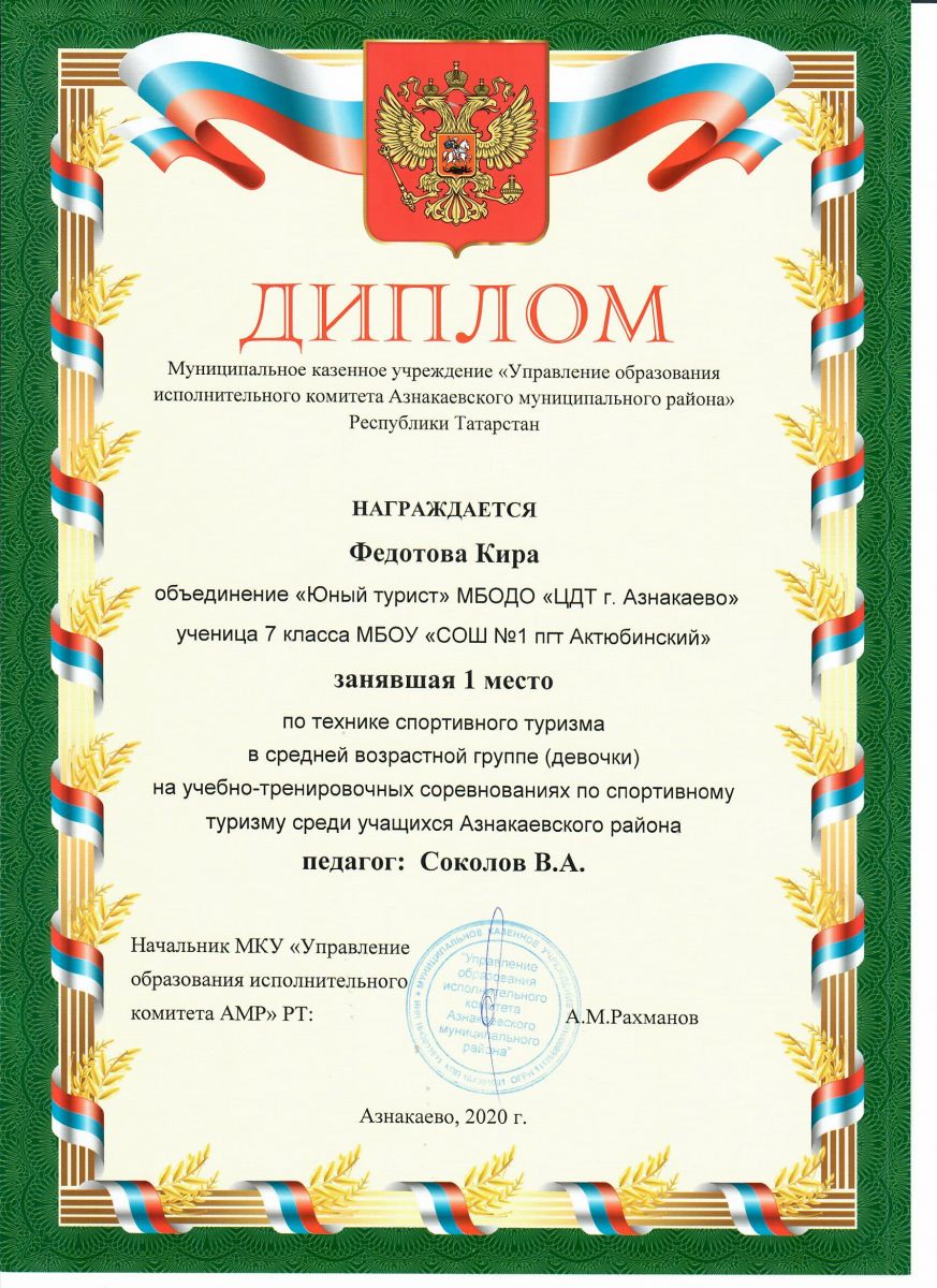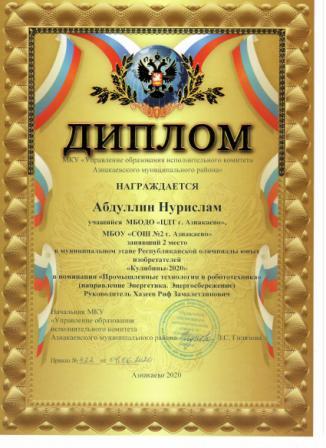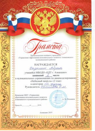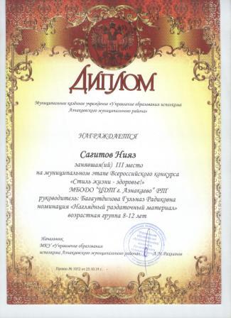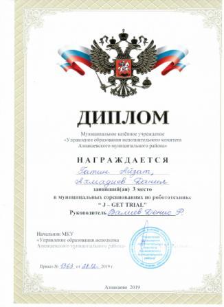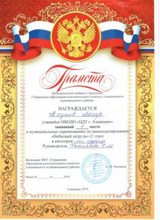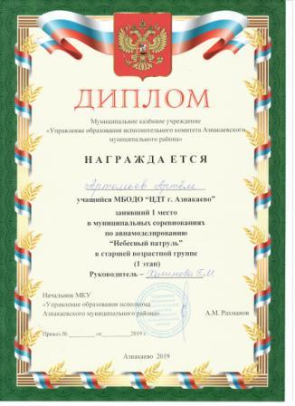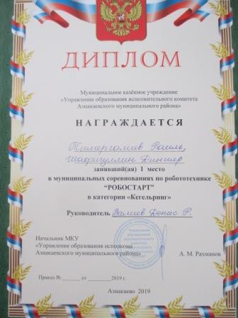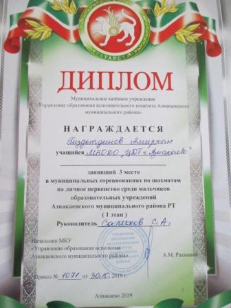 1 место в муниципальных соревнованиях по шахматам на личное первенство ("Каиссия", Салихов С.А.)