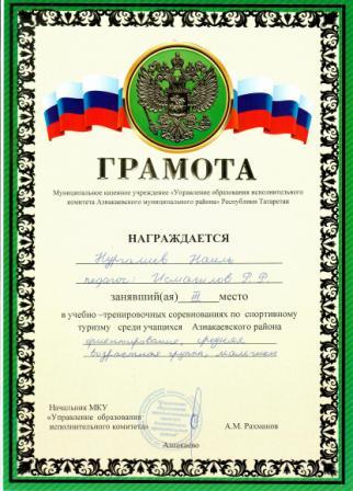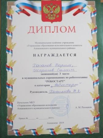 3 место в муниципальных соревнованиях по шахматам на личное первенство (Нуров Д., Салихов С.А.)