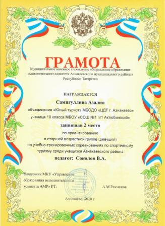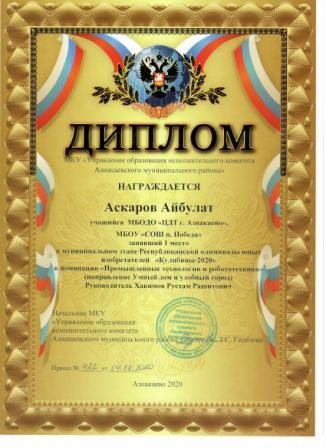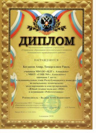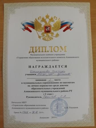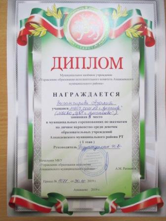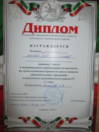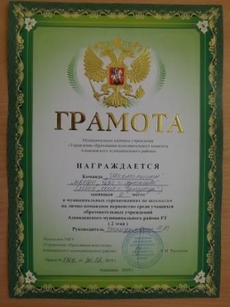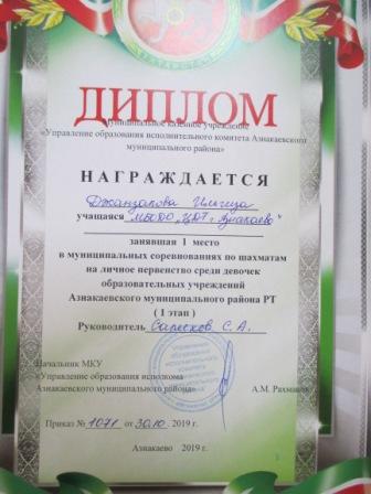 1 место в муниципальных соревнованиях по шахматам на личное первенство (Джанзакова И., Салихов С.А.)