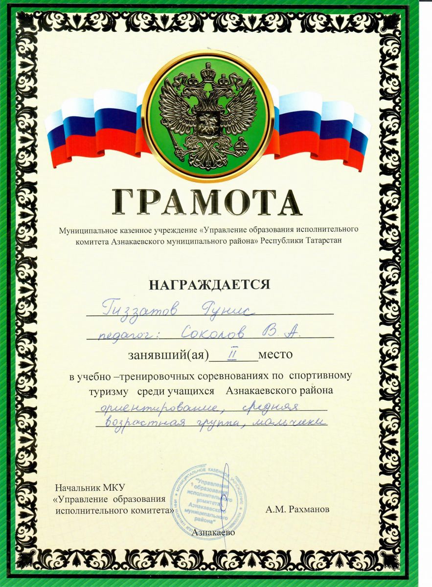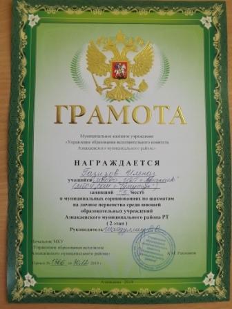 2 место в муниципальных соревнованиях по шахматам на личное первенство (Бахтиев И., Салихов С.А.)