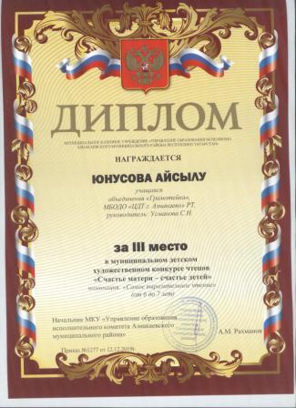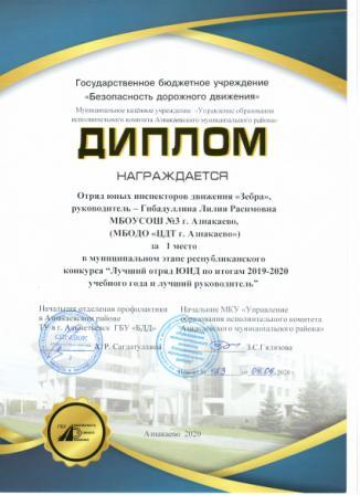 3 место в муниципальном конкурсе отрядов ЮИД "Молодцы, юидовцы" (команда, Гибадуллина Л.Ф.)