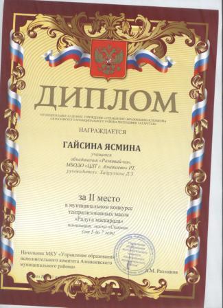 2 место в муниципальном конкурсе театральных масок «Радуга маскарада» (Гайсина Я., Хайруллина Д.З.)