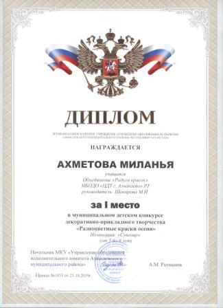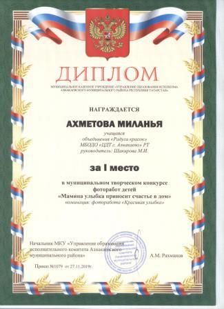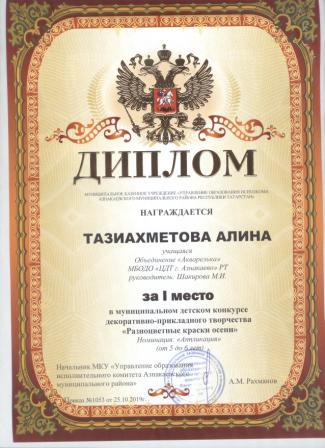 1 место в муниципальном конкурсе театральных масок «Радуга маскарада» (Ахметова М., Шакирова М.И.)